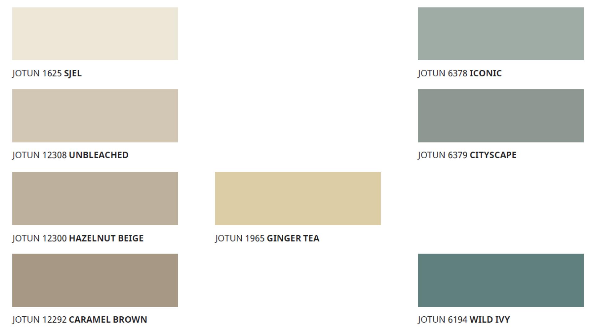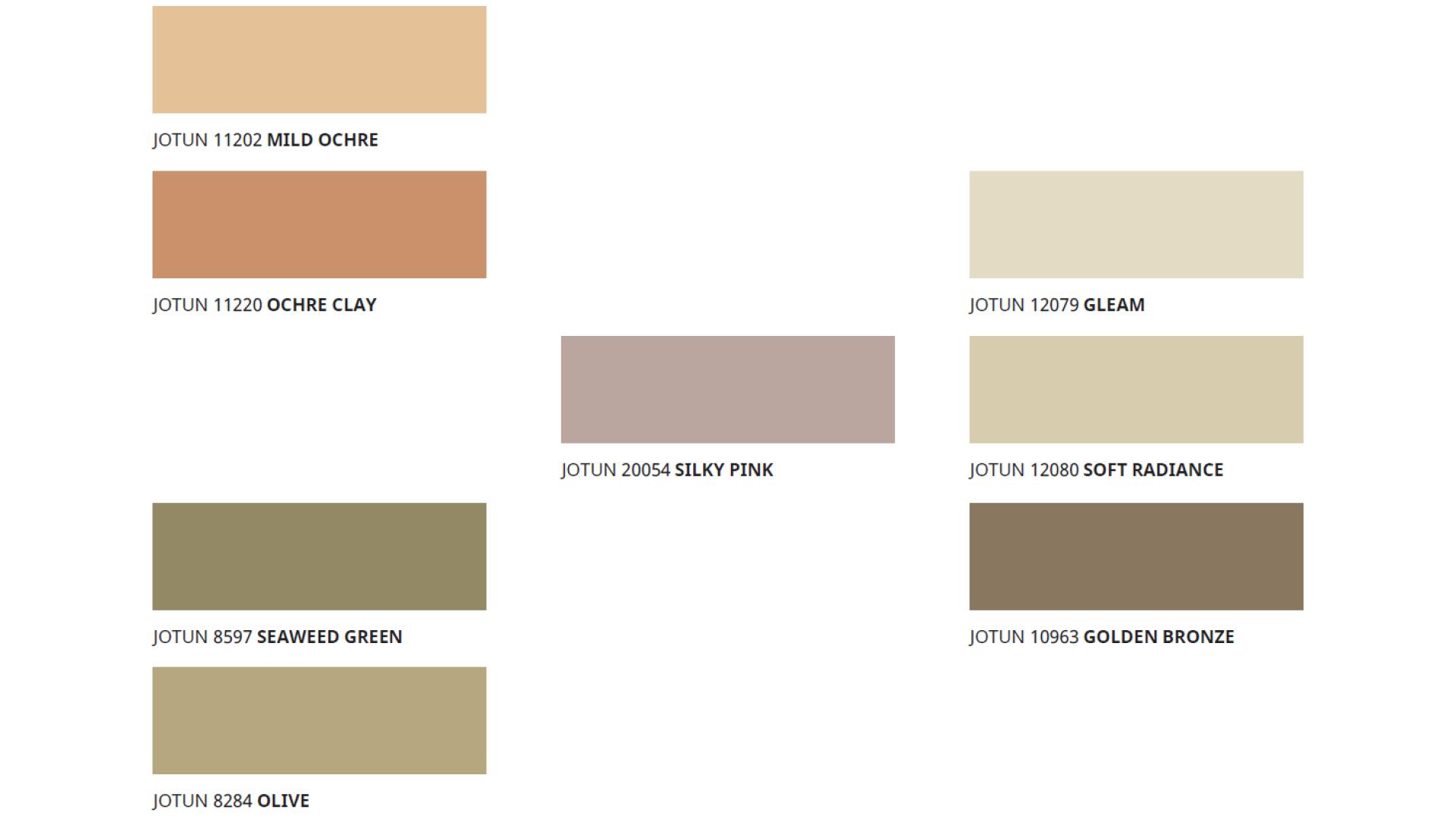 JOTUN 12313 Soft Dunes, 2951 Sophisticated Red, 8493 Green Tea