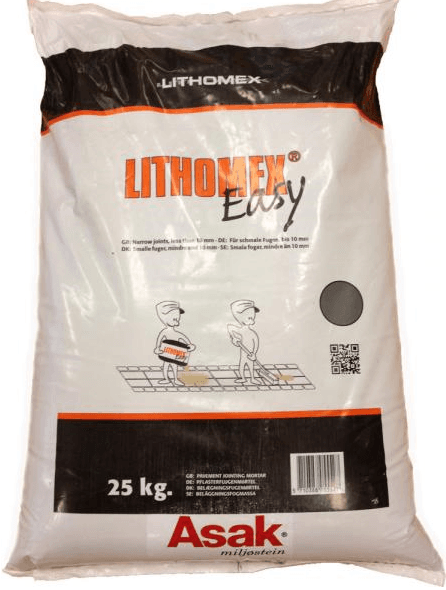Herdende fugesand har lengre levetid og er svært effektivt mot ugress og groing. Herdende fugesand har en egen bruksanvisning som må følges. Litho Easy består av kvartssand blandet med et bindemiddel som forsterker belegningen og gir stabile fuger. Bindemiddelet i fugesanden aktiveres gjennom å fukte fugene med vann. Sanden blir geleaktig og fugen stabiliseres når den vannes.